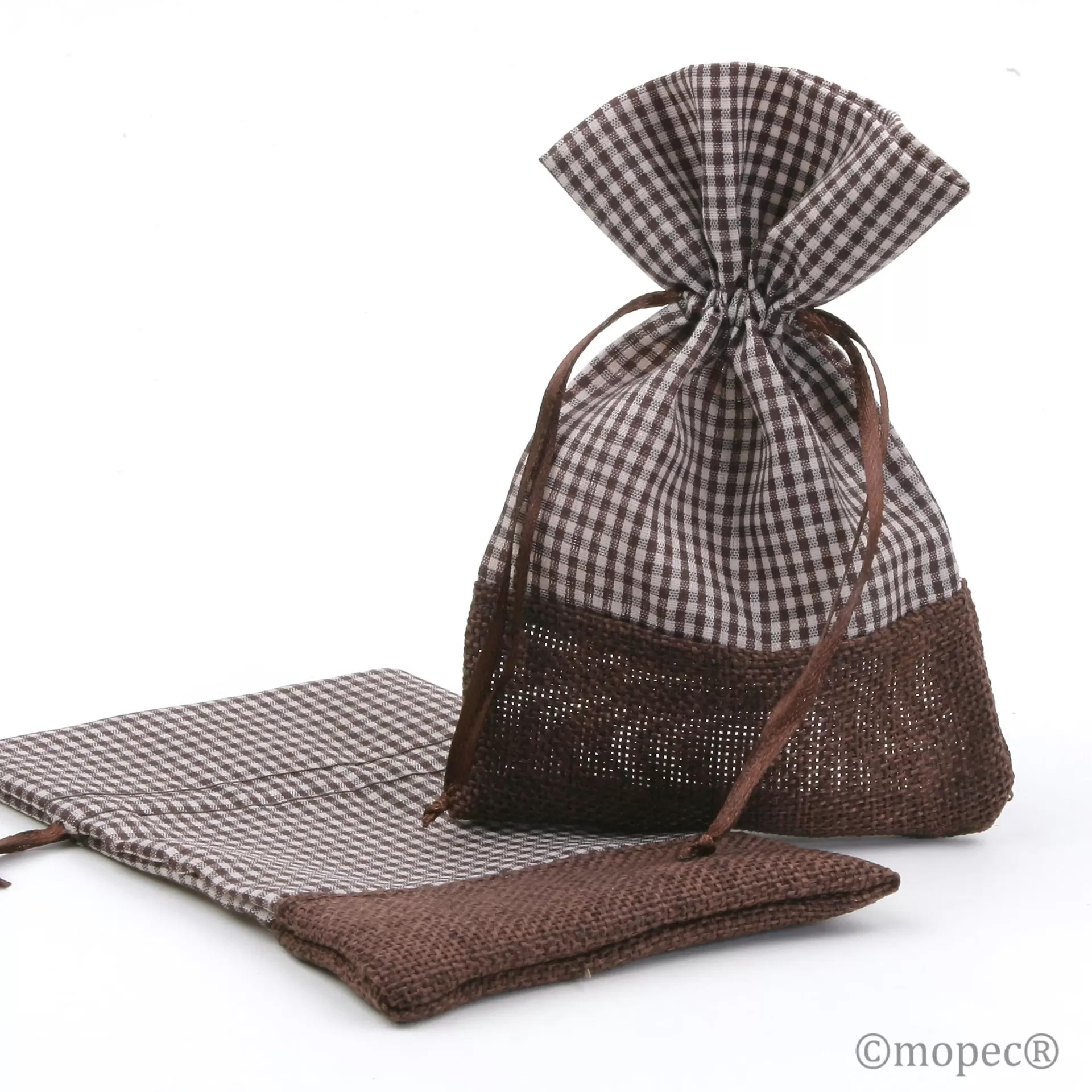 12 Sacos de juta com tecido bordeaux.