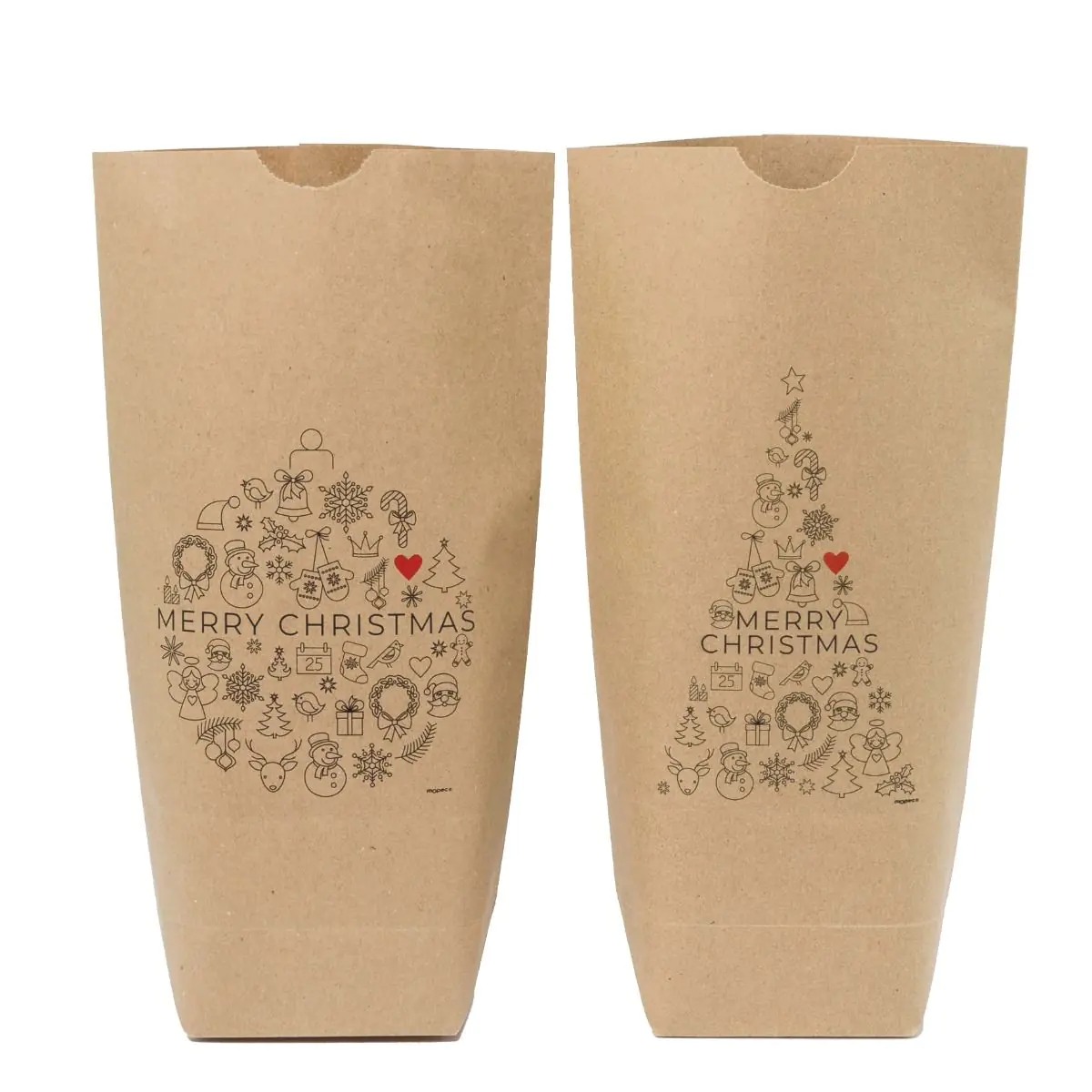 24 Bolsas Kraft Merry Christmas com desenhos, são a embalagem ideal para encher com uma oferta especial ou guloseimas.