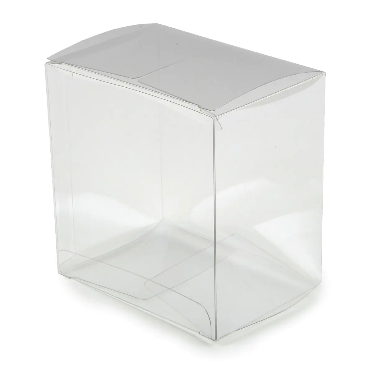 Prática caixa transparente que pode ser decorada com laços, etiquetas ou cartões e preenchida com tule e com uma pulseira ou porta-chaves comemorativa ou um lenço. Você pode adicionar uma base colorida de cores diferentes.
