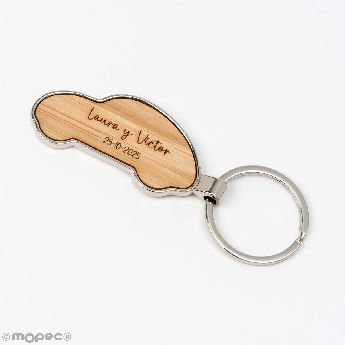 Conjunto de 5 elegantes porta-chaves em bambu e metal em forma de carro, perfeitos para qualquer ocasião e com um design versátil para qualquer look.