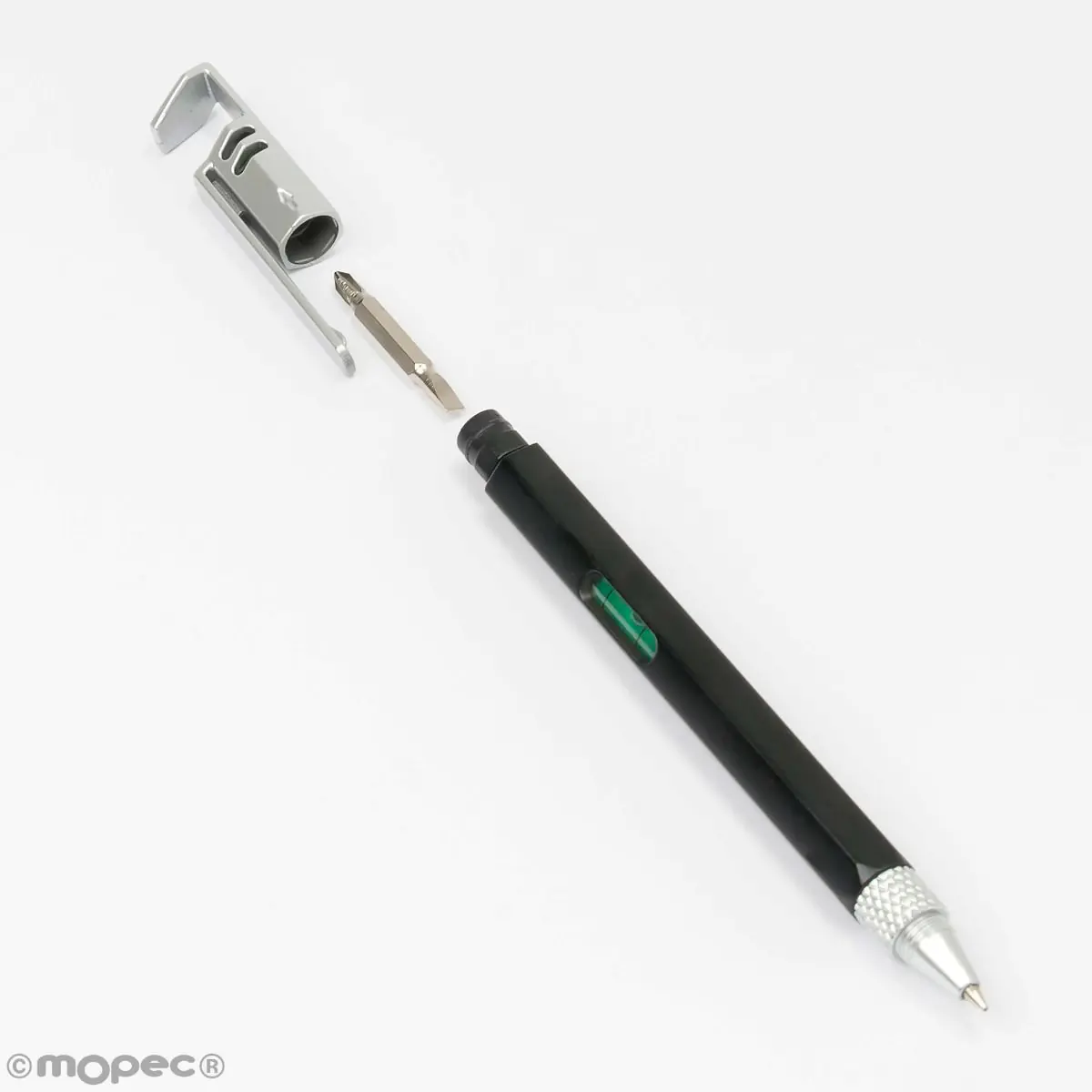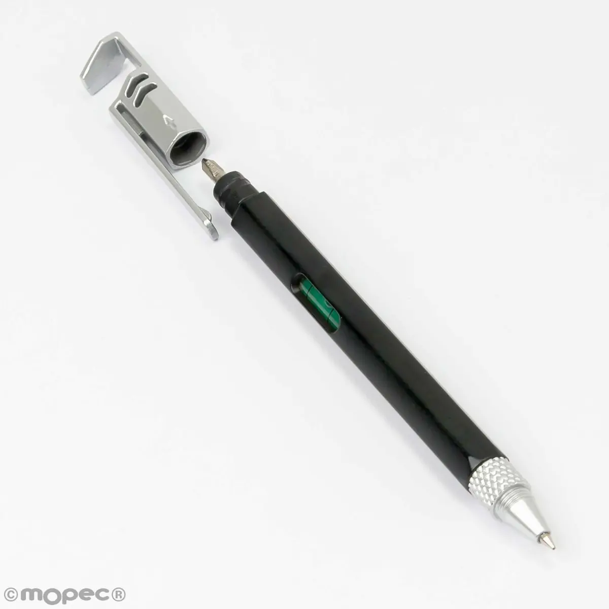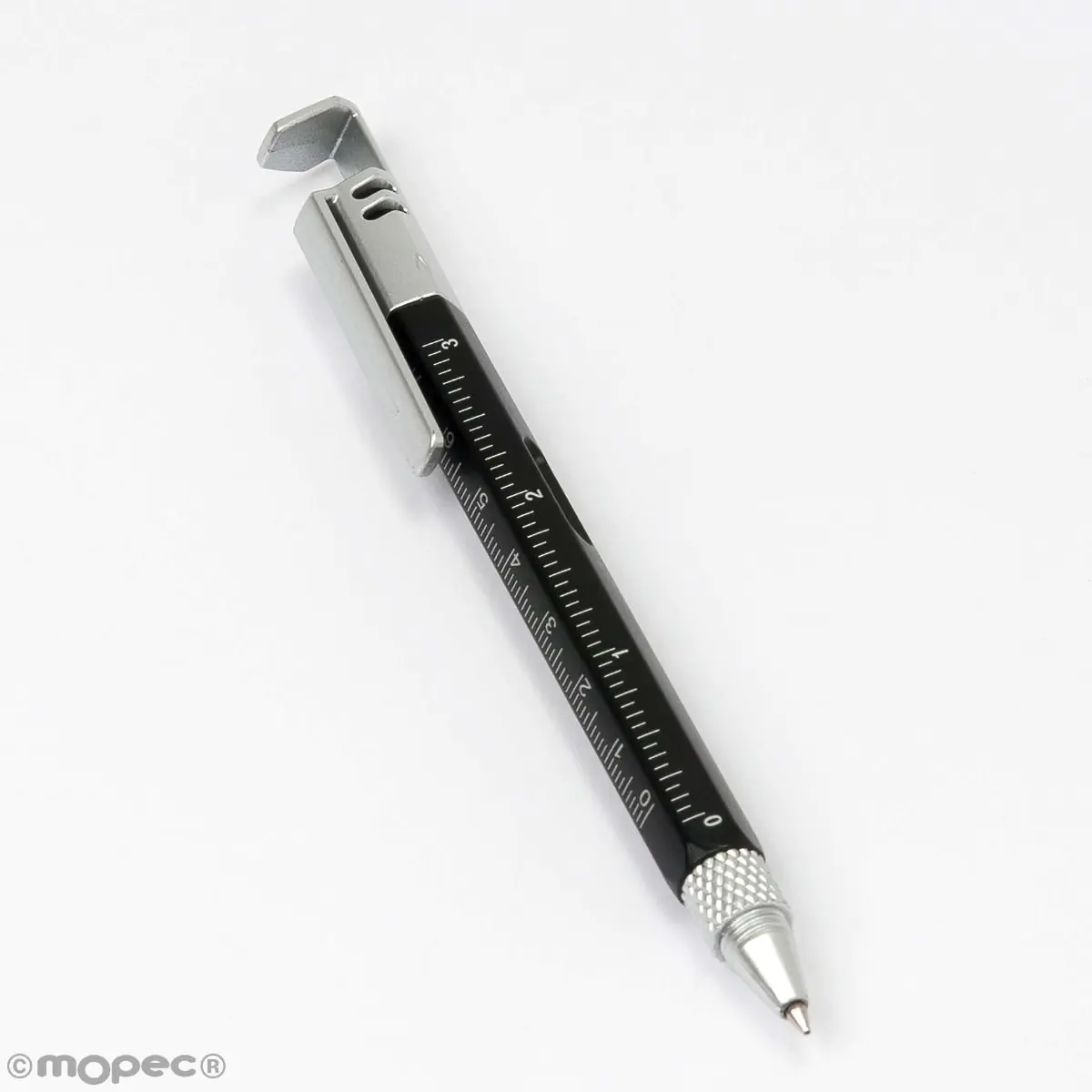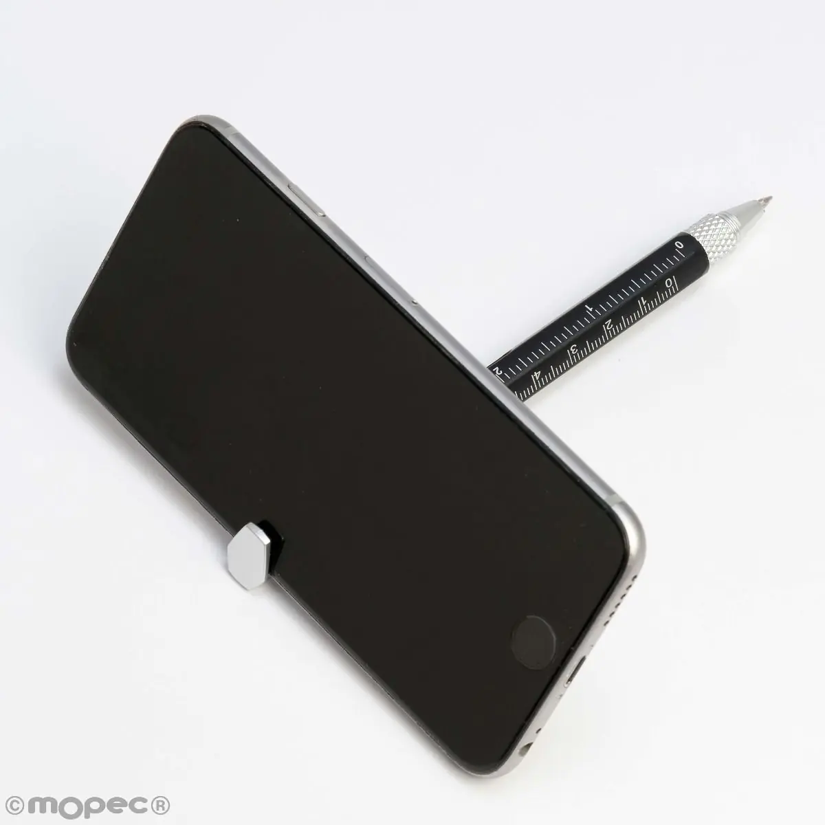 Conjunto de 6 canetas multifuncionais, práticas e modernas, o seu formato exclusivo permite que cada caneta seja usada como suporte para telemóveis, outras características que detém é que possui fita métrica de 7cm, um pequeno nível e uma chave de fendas dupla (chata e estrela).