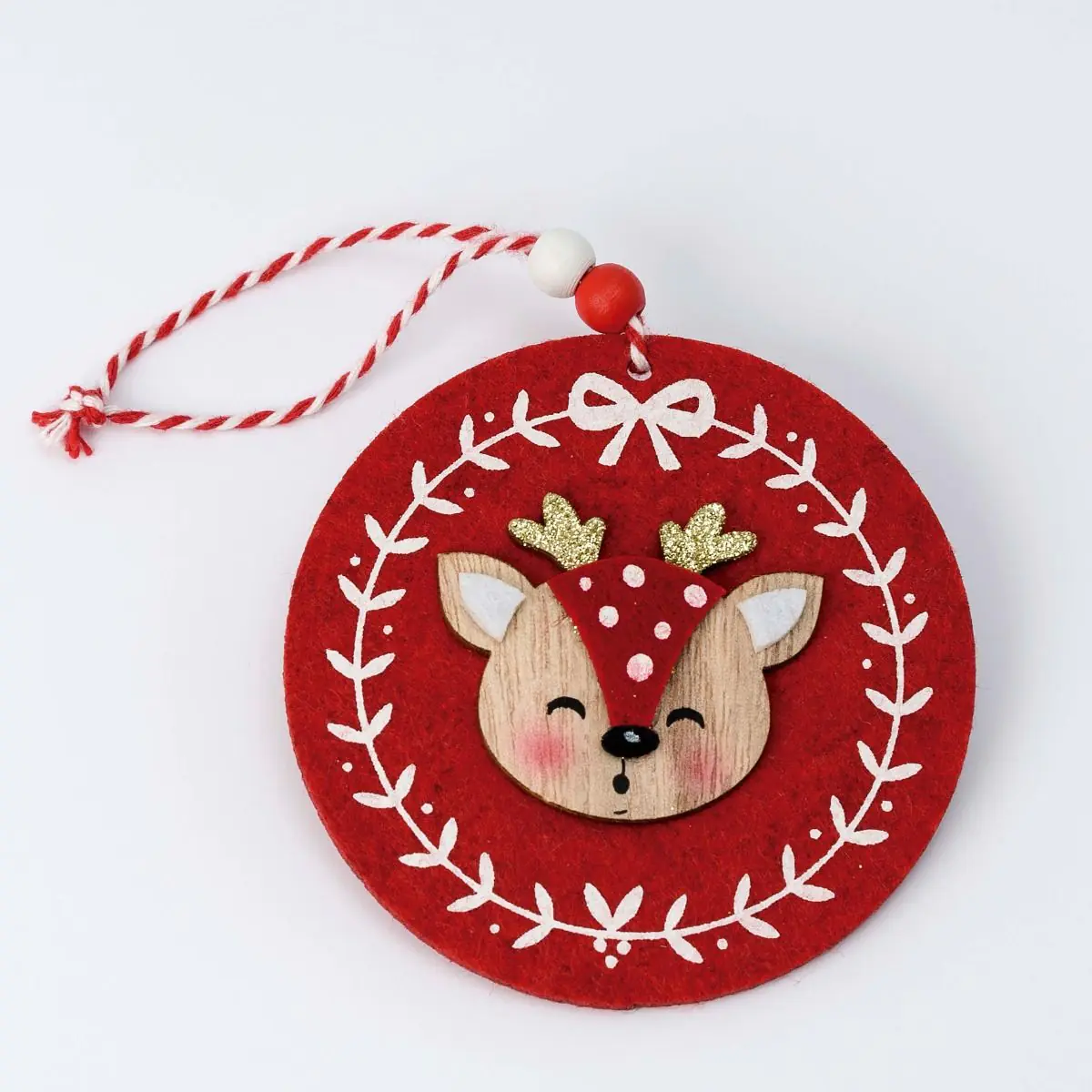 Conjunto de 6 pendentes de feltro vermelho com veado em madeira.