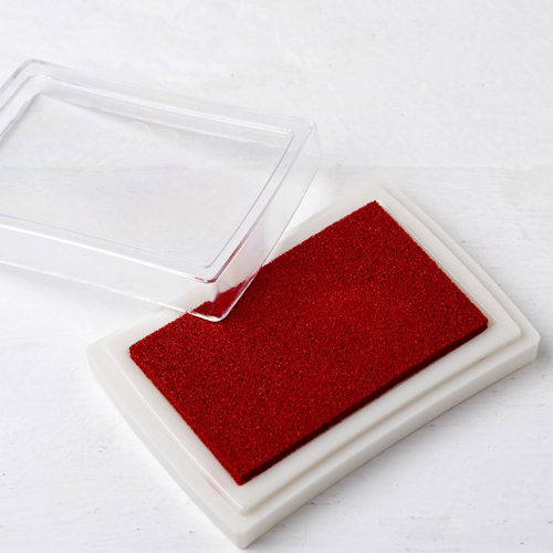 Almofada de tinta vermelha para carimbos.