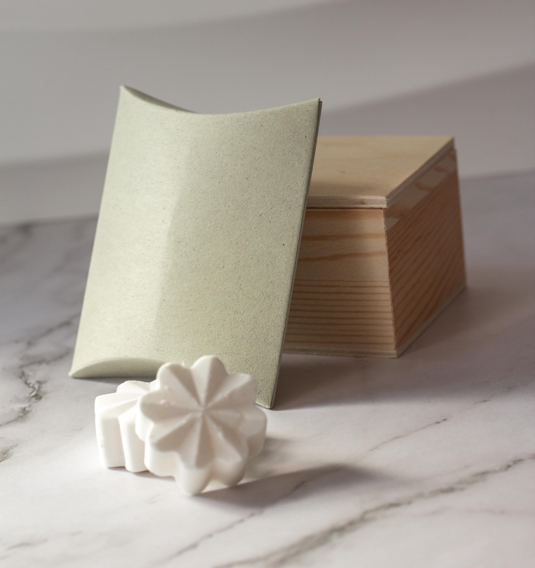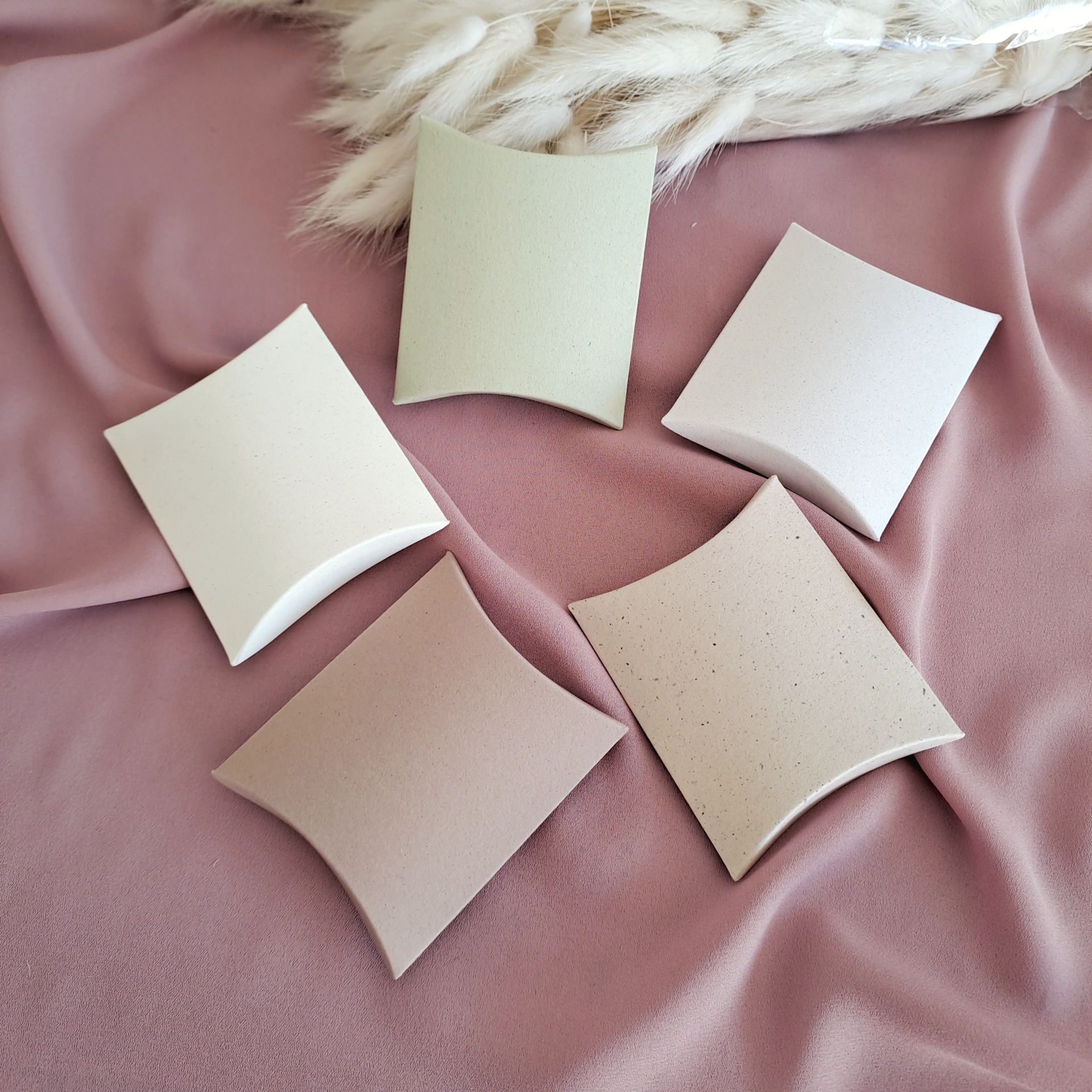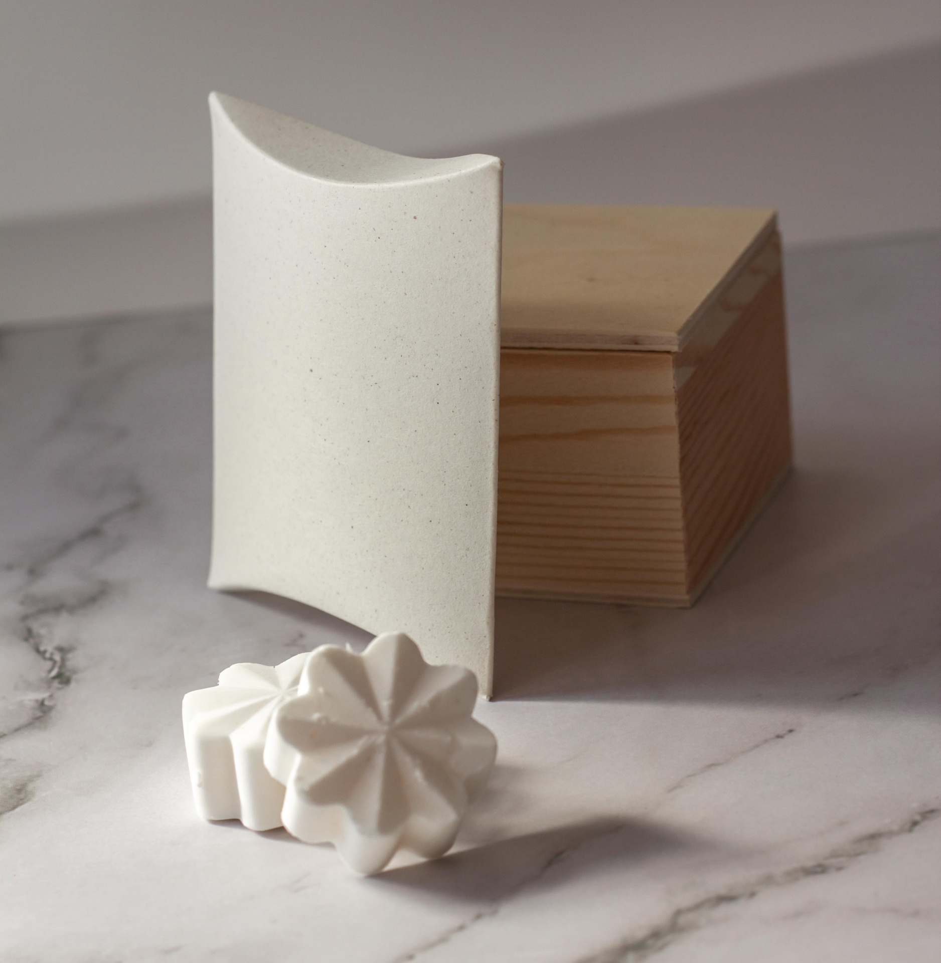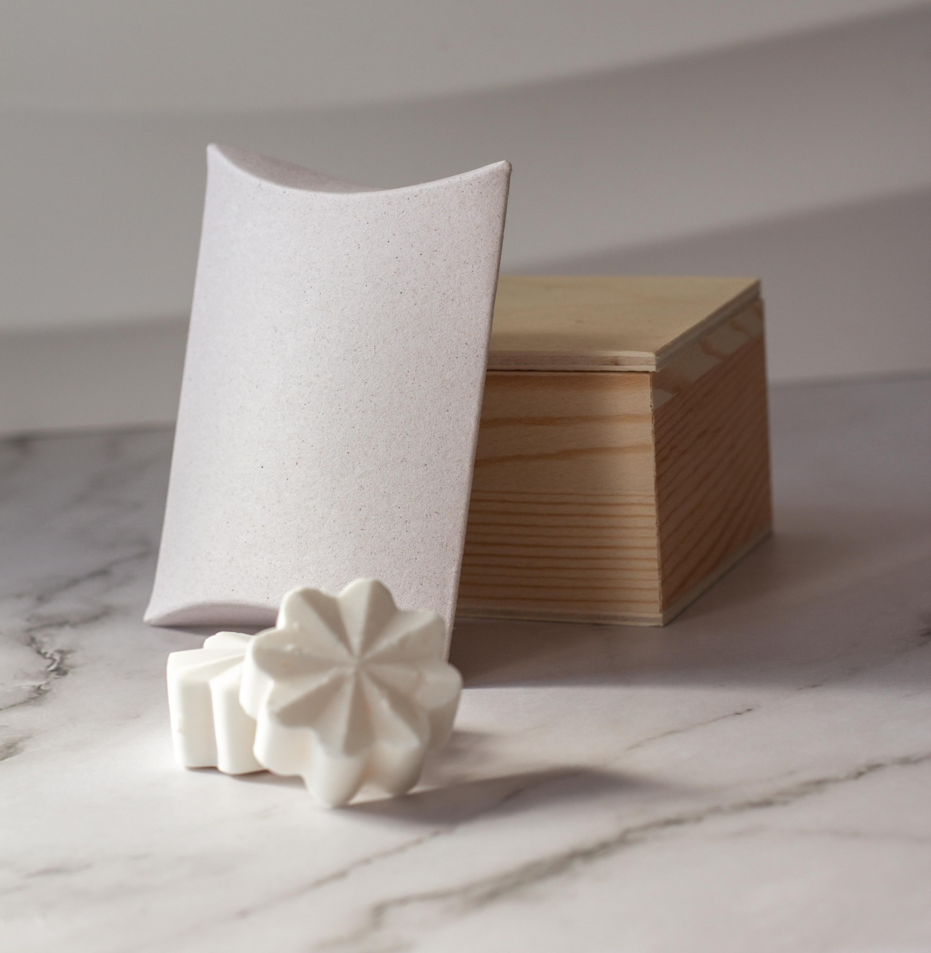 Caixa almofada em papel Organic 250gr, papel mate e ecológico.
