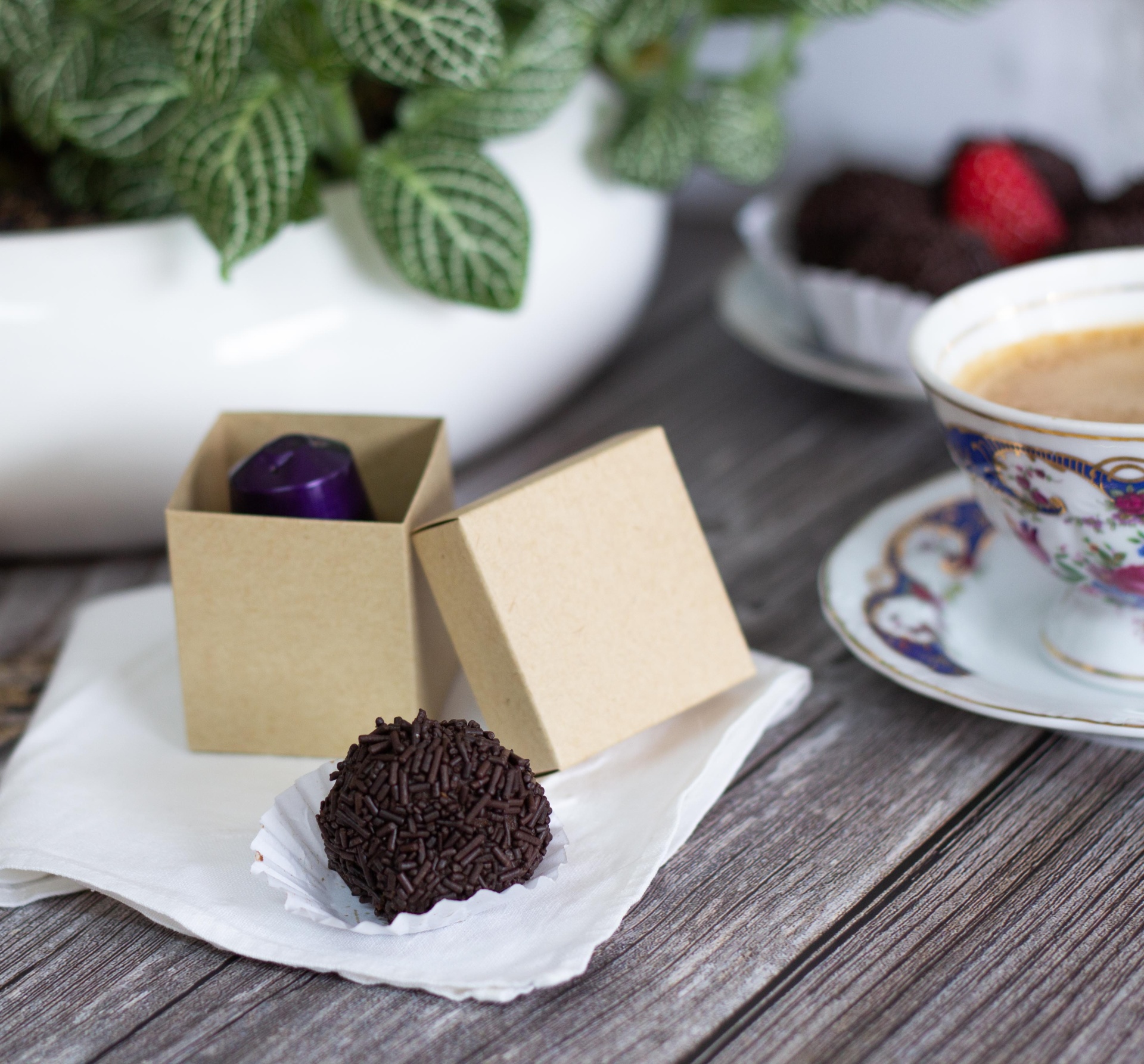 Pode conter um pequeno brinde, como por exemplo uma capsula de café, um brigadeiro, uma pequena vela ou wax melts, o que desejar, desde que seja pequeno.