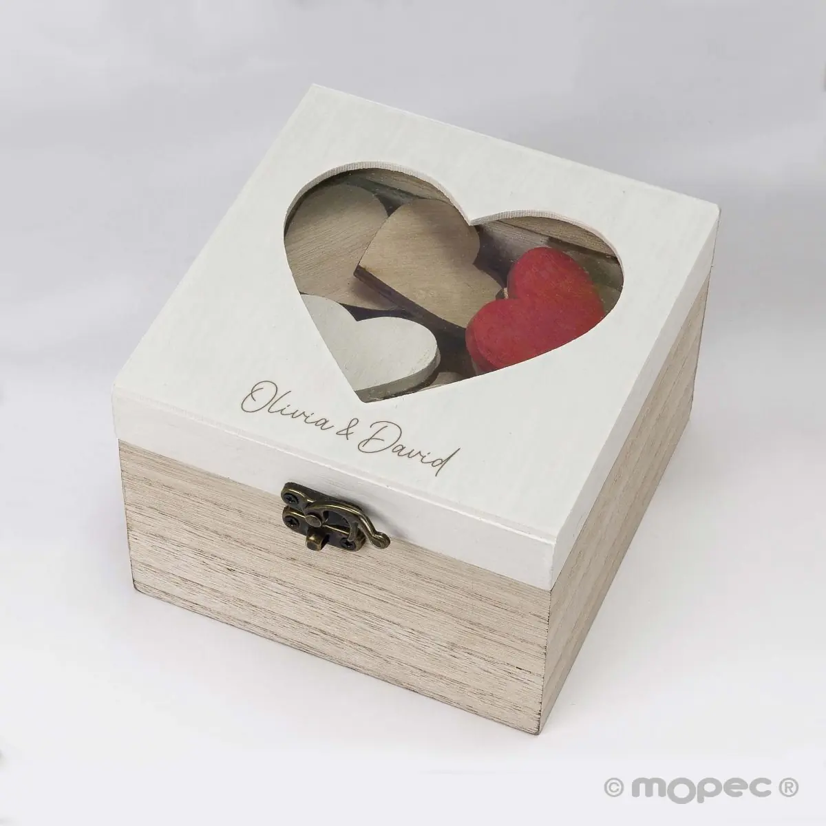 Caixa de madeira personalizável com corações