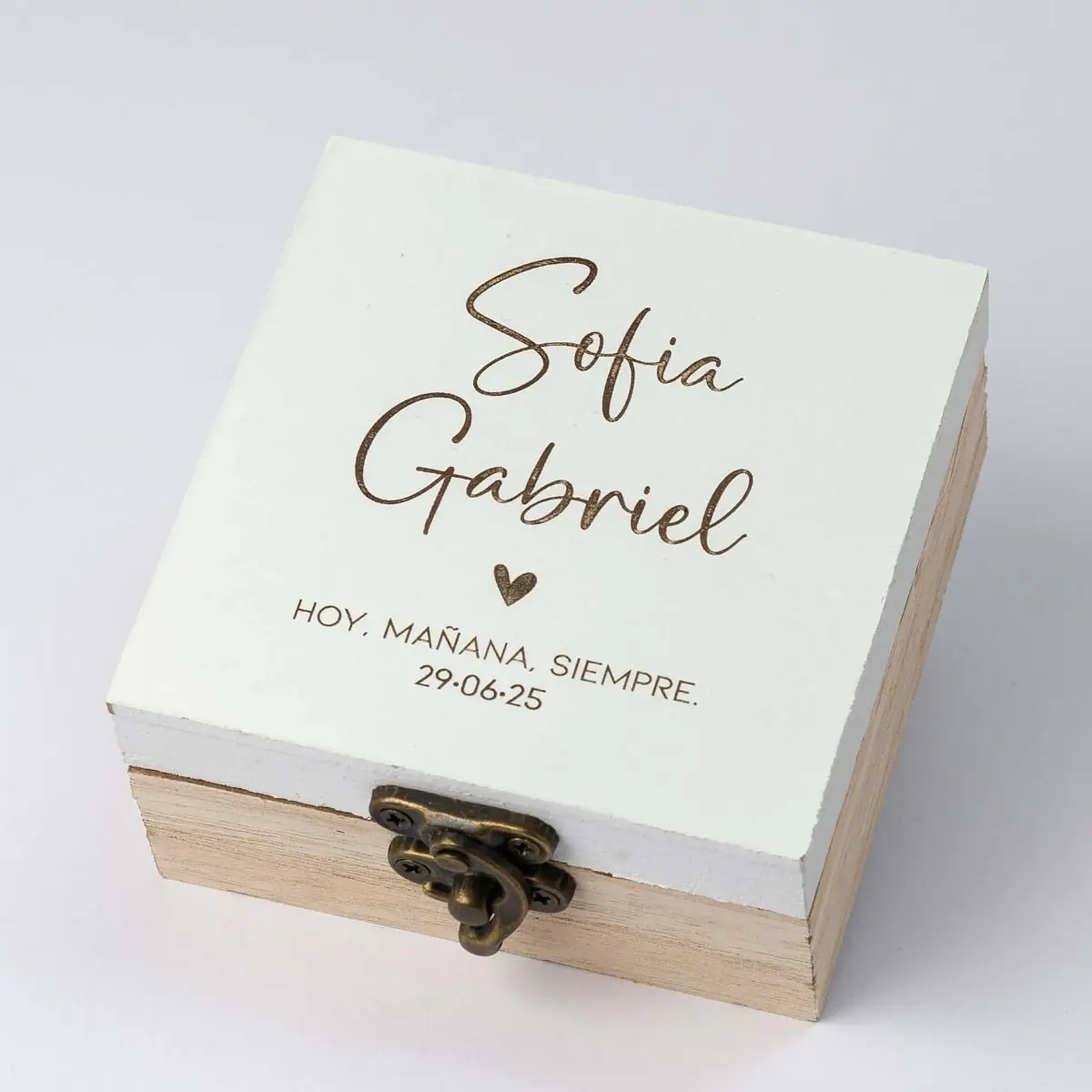 Home Porta alianças Caixa de madeira personalizável para alianças Caixa de madeira personalizável para alianças 0 unidades em stock | SKU: W27 Personalização 18,65 € Desconto de %. IVA incluído. Compre este produto e ganhe 18 Corações! Saber mais Comprar Contactar Adicionar à wishlist Linda caixa para alianças ou para presentear aos convidados com desenho "Hoje, Amanhã e Sempre" personalizada com nome e data do casamento. Possui fecho de metal de design vintage e a caixa é de cor madeira natural na base e branca na parte superior. Uma linda lembrança para os noivos do seu dia especial. É um detalhe muito versátil e original. Medida: 8,5x4,3x8,5cm Marca Mopec Tags Caixa de madeira Personalização Artigos personalizáveis Características Partilhar