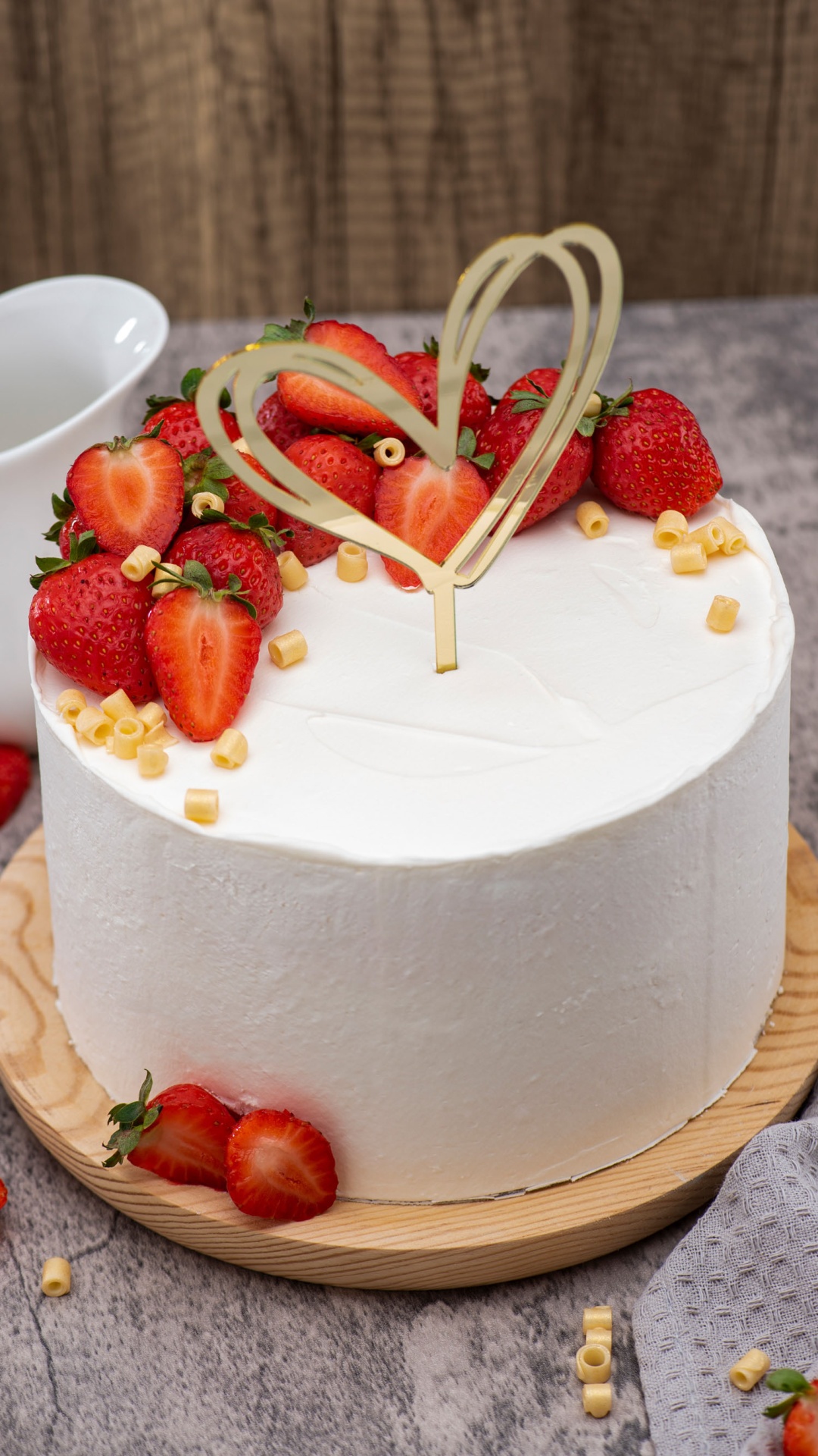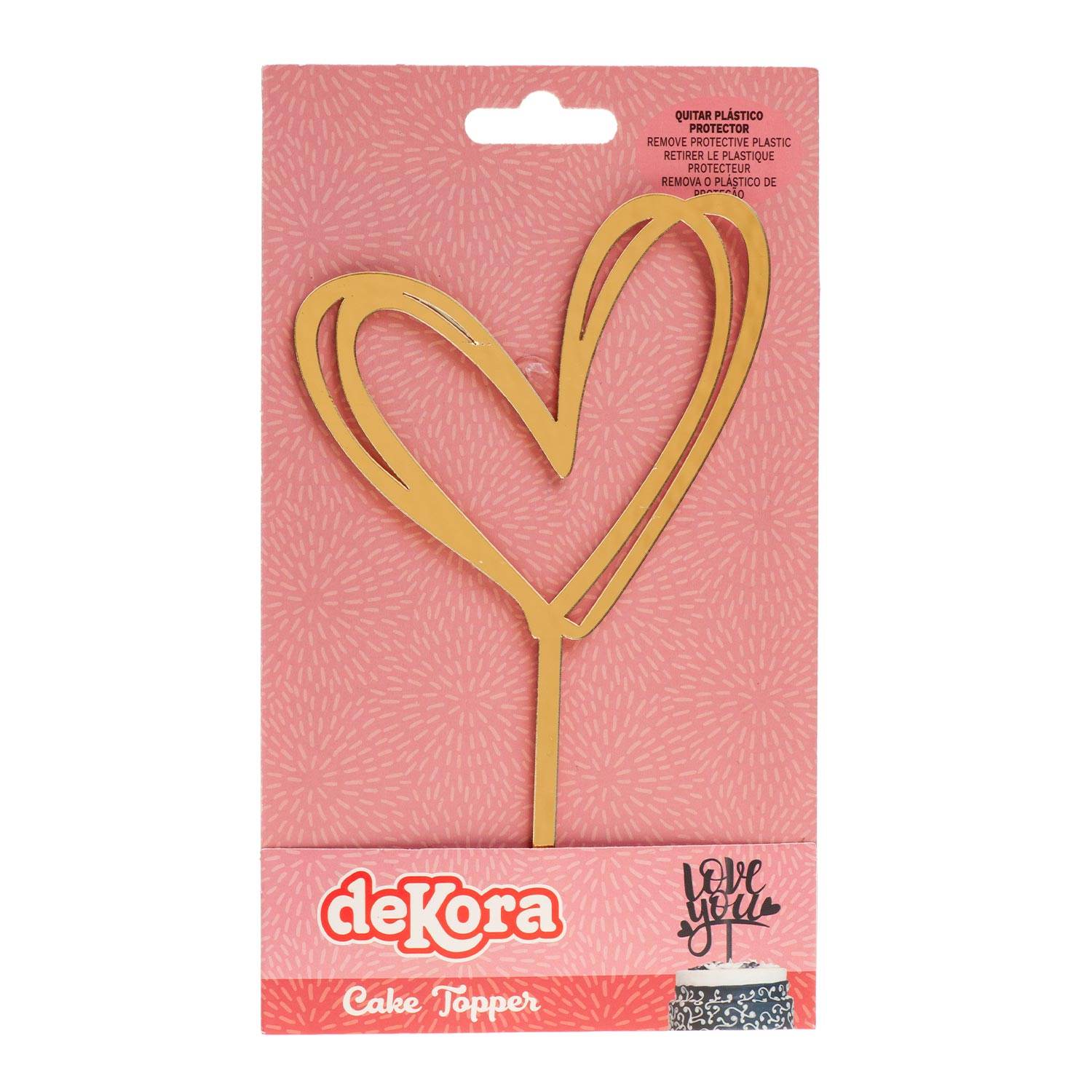Um coração em PVC dourado é um topo de bolo simples, mas complementa seja o bolo como a decorção da mesa.