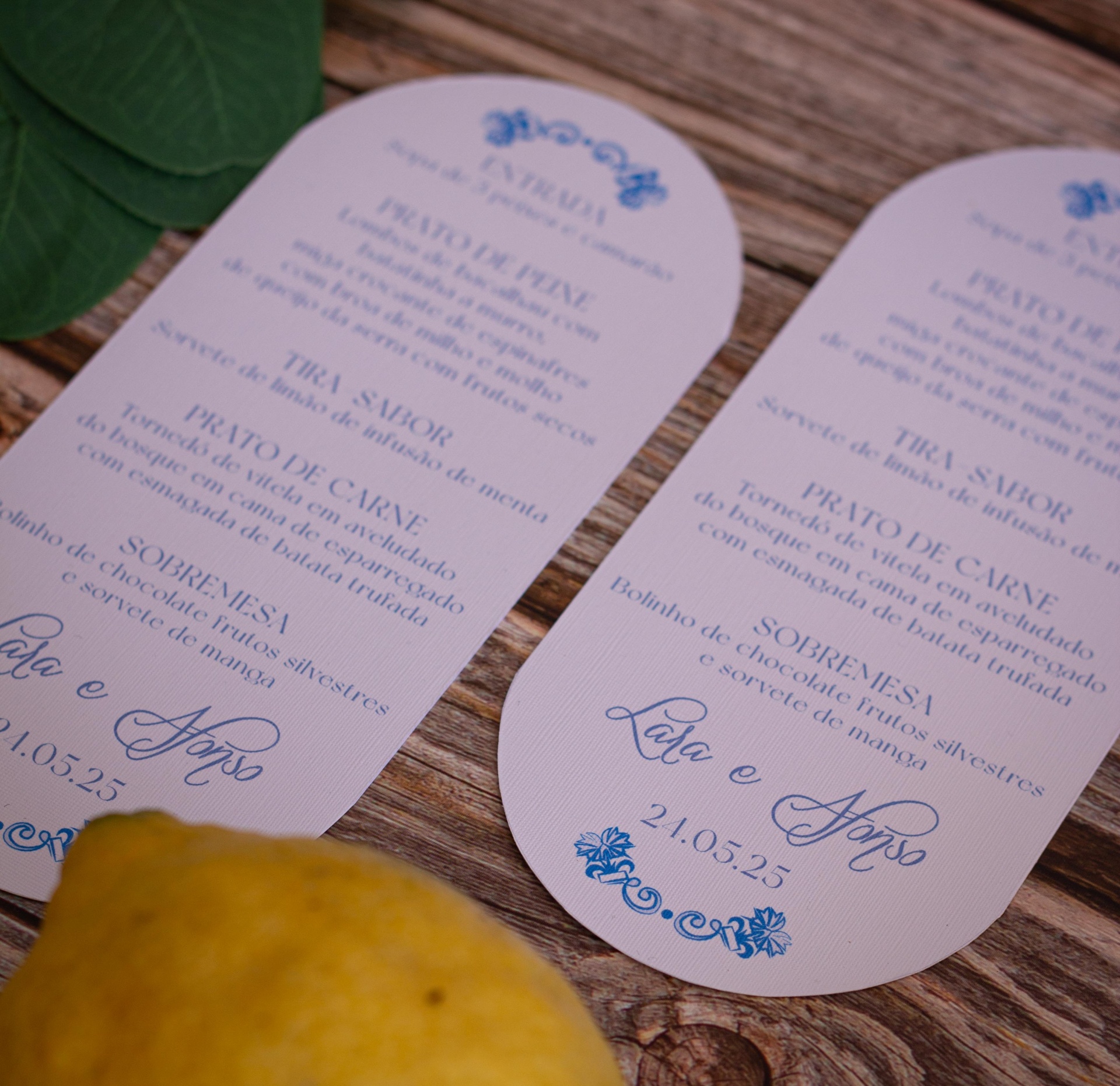 Coloque os dados necessários como descrição do menu, nomes, data e local da cerimónia no campo das observações no final da encomenda.