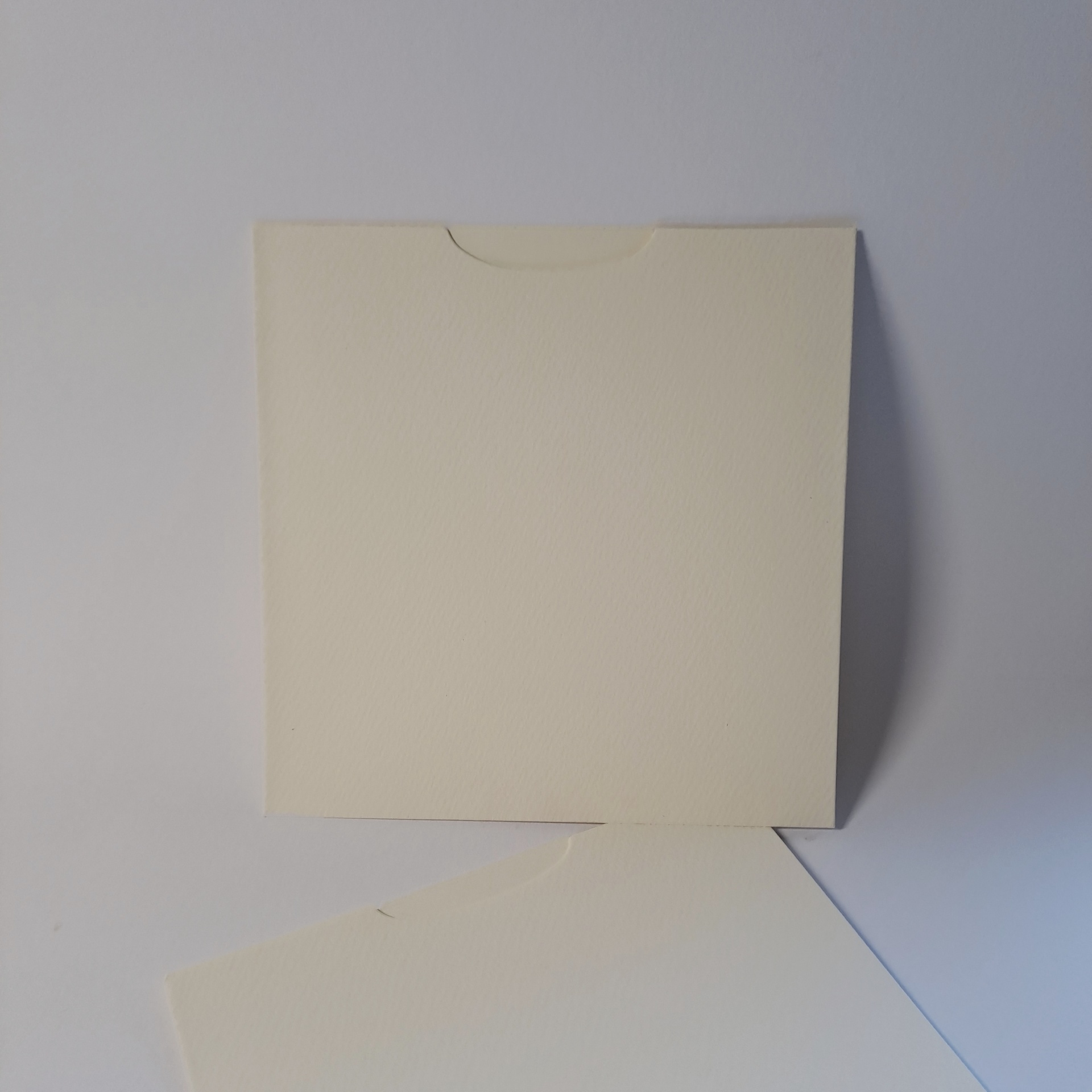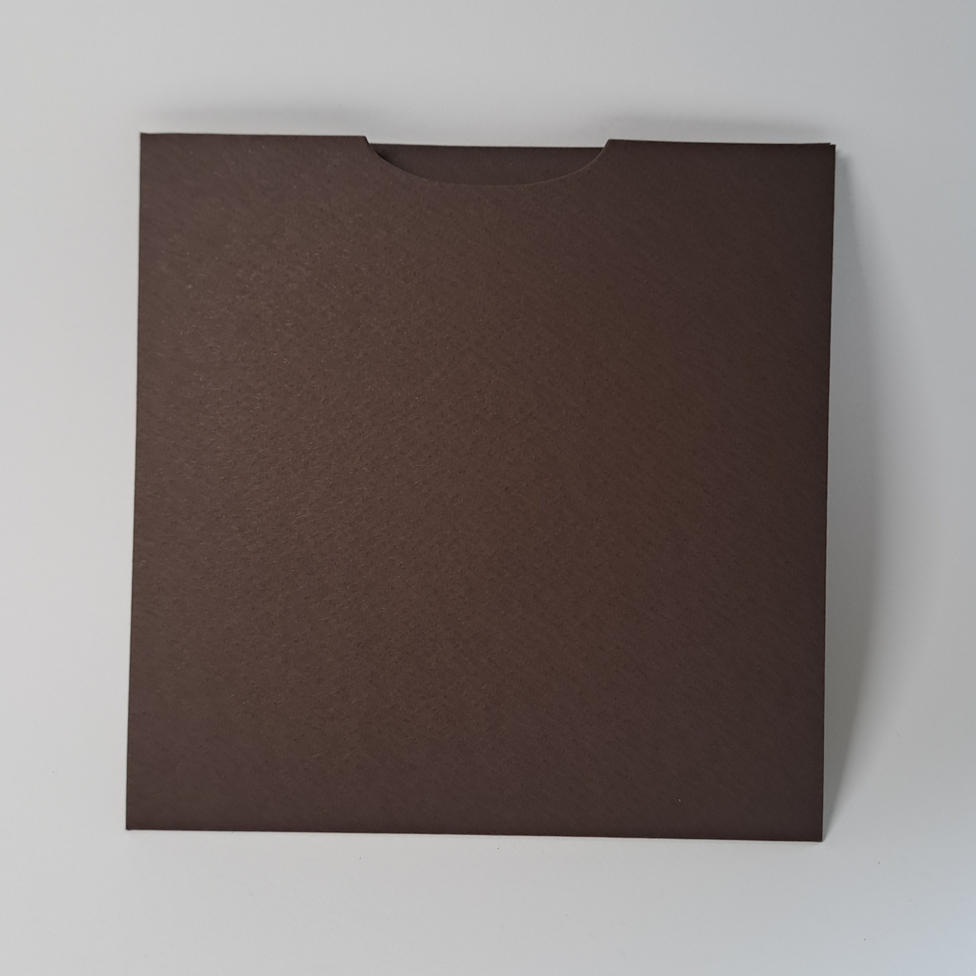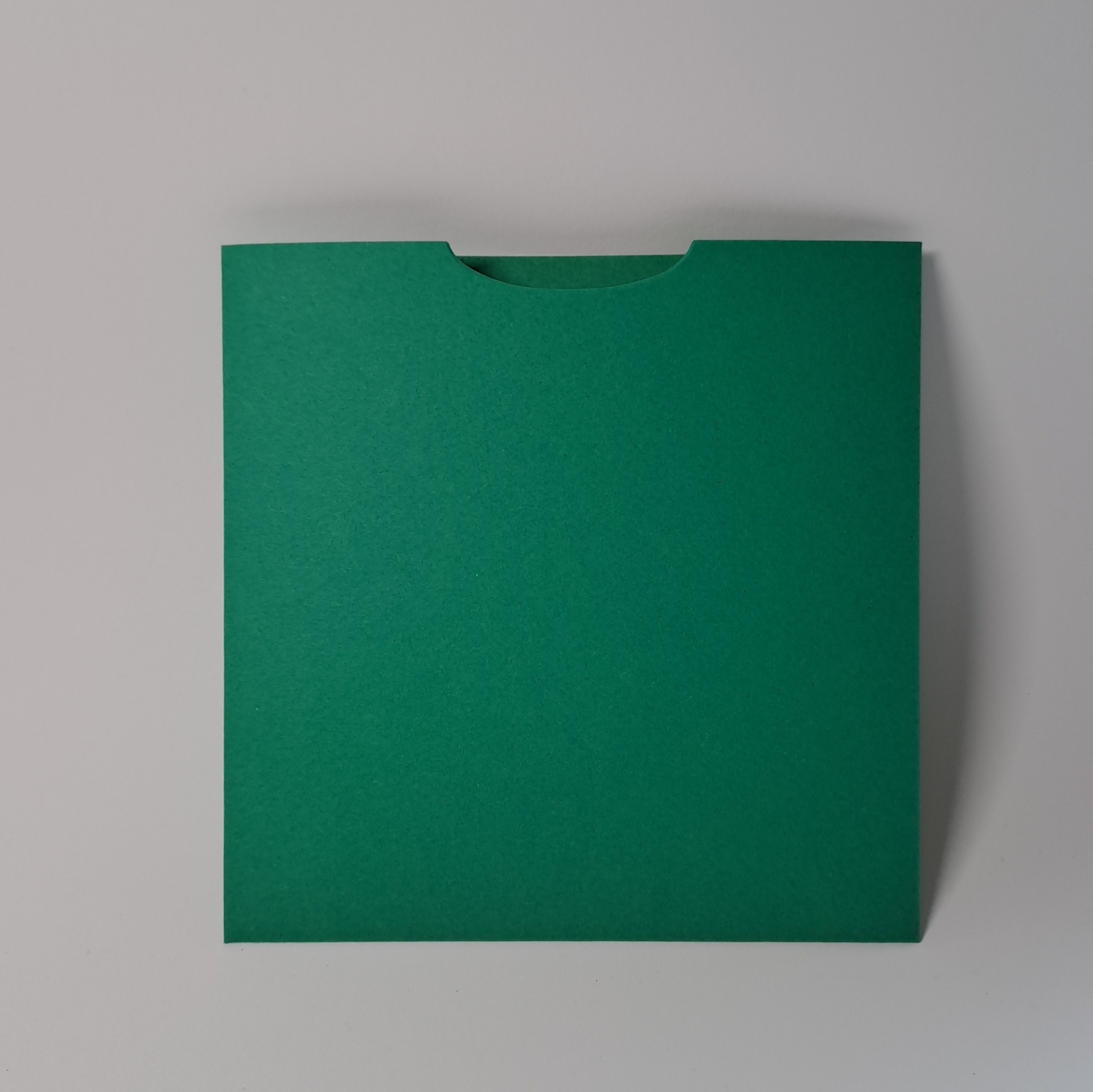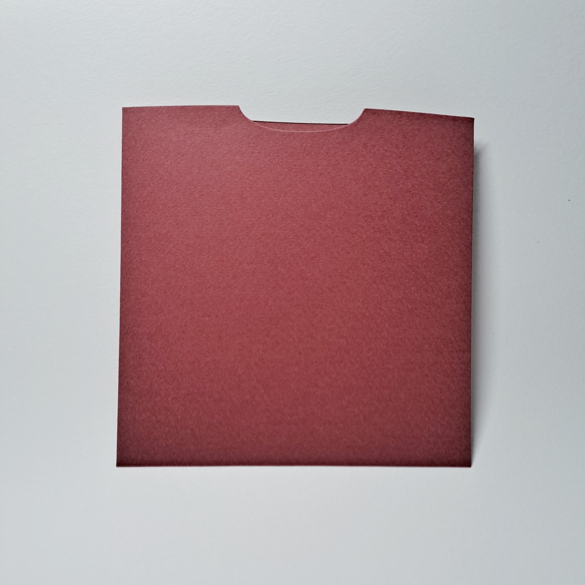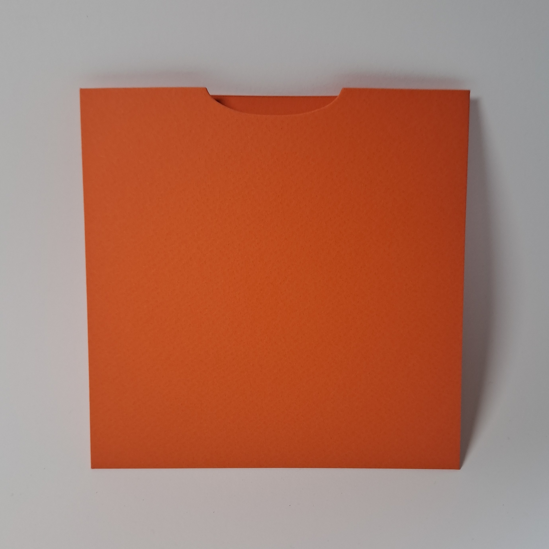 Envelope Prisma Mate/texturada estilo luva com corte redondo para puxar.