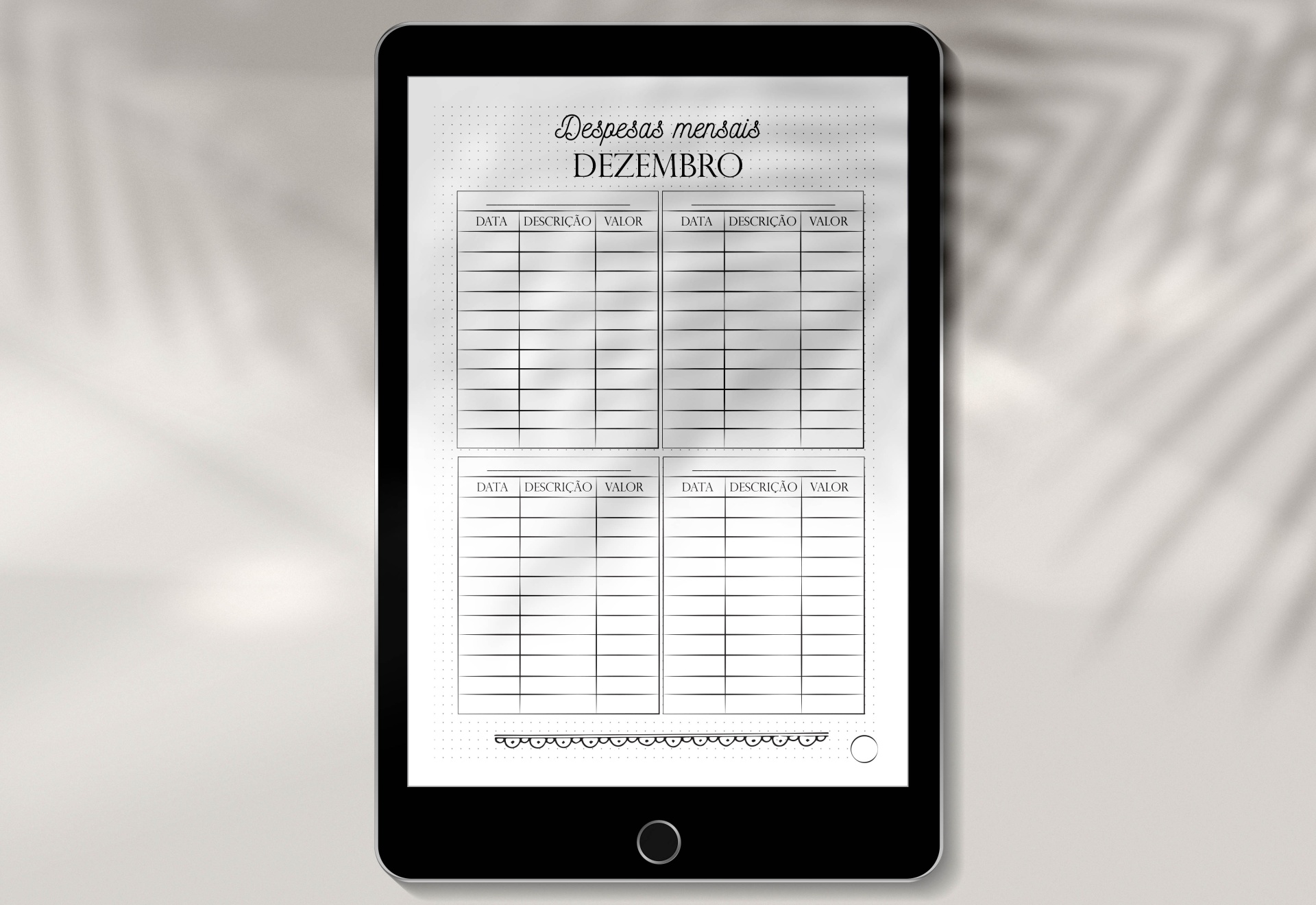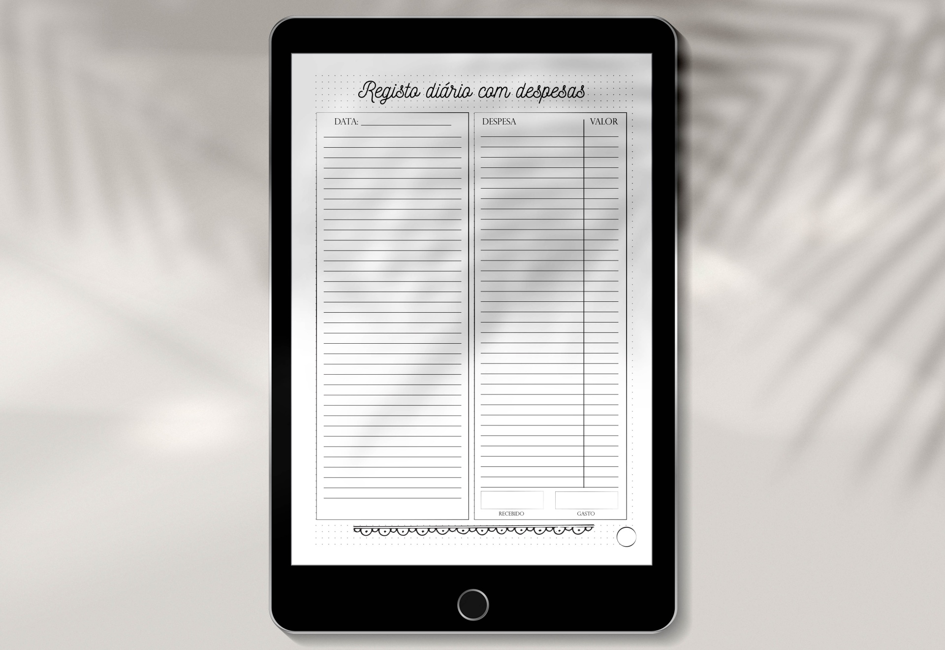 Podes registar todos os momentos ao longo de todo o teu dia no teu tablet ou Ipad como se fosse uma agenda e ao lado registas os movimentos de dinheiro que recebes e gastas. Ao final do dia já terás uma maior noção de todos os gastos que fizeste. No final de cada mês podes agrupar as despesas num quadro de despesas mensais e no final do ano poderás atualizar tudo na página de resumo anual. Estebelece metas e objetivos, o teu journal ajuda-te a manter o controlo.