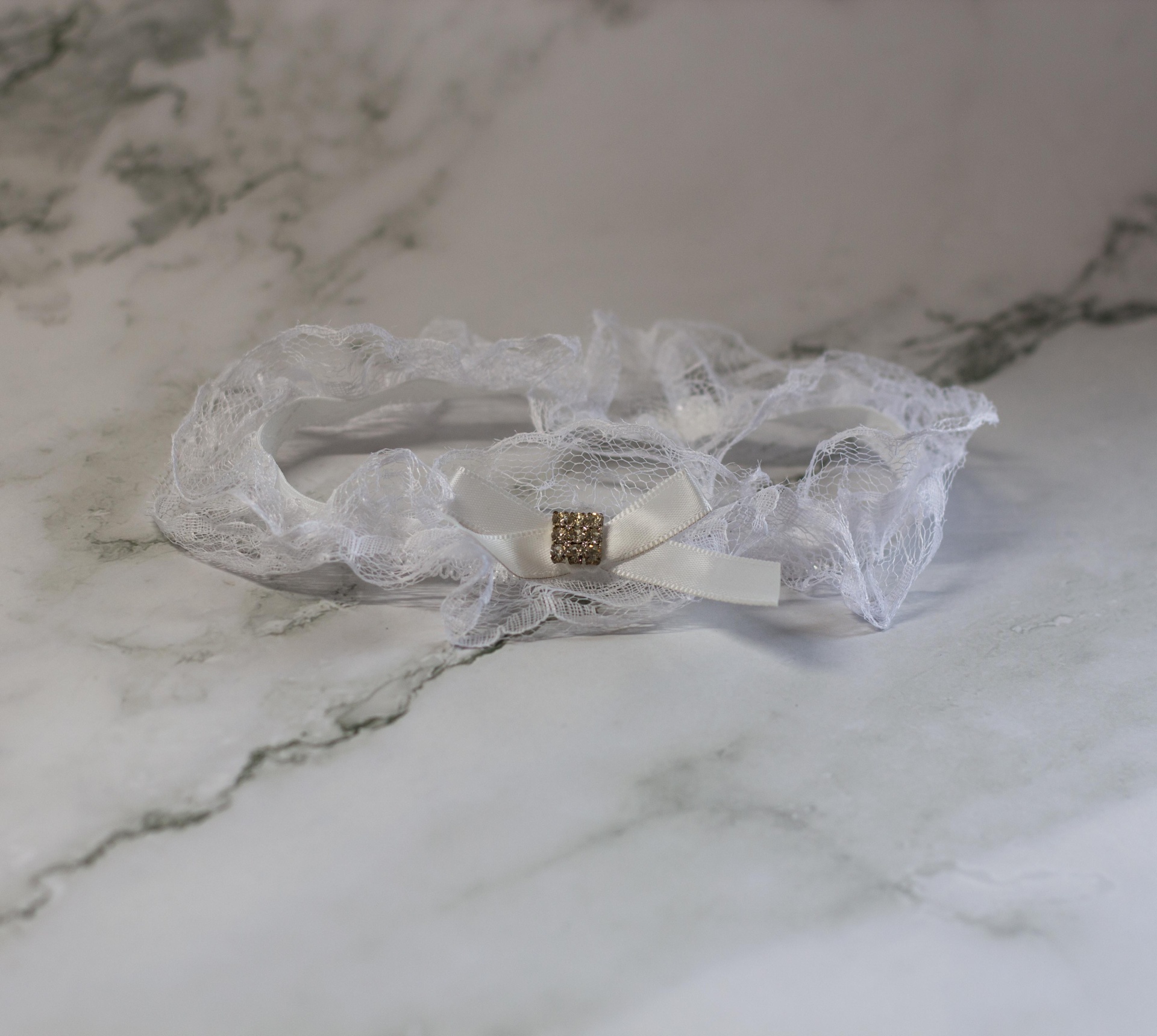 Um dos acessórios essenciais para uma noiva é esta linda liga para o dia do casamento.