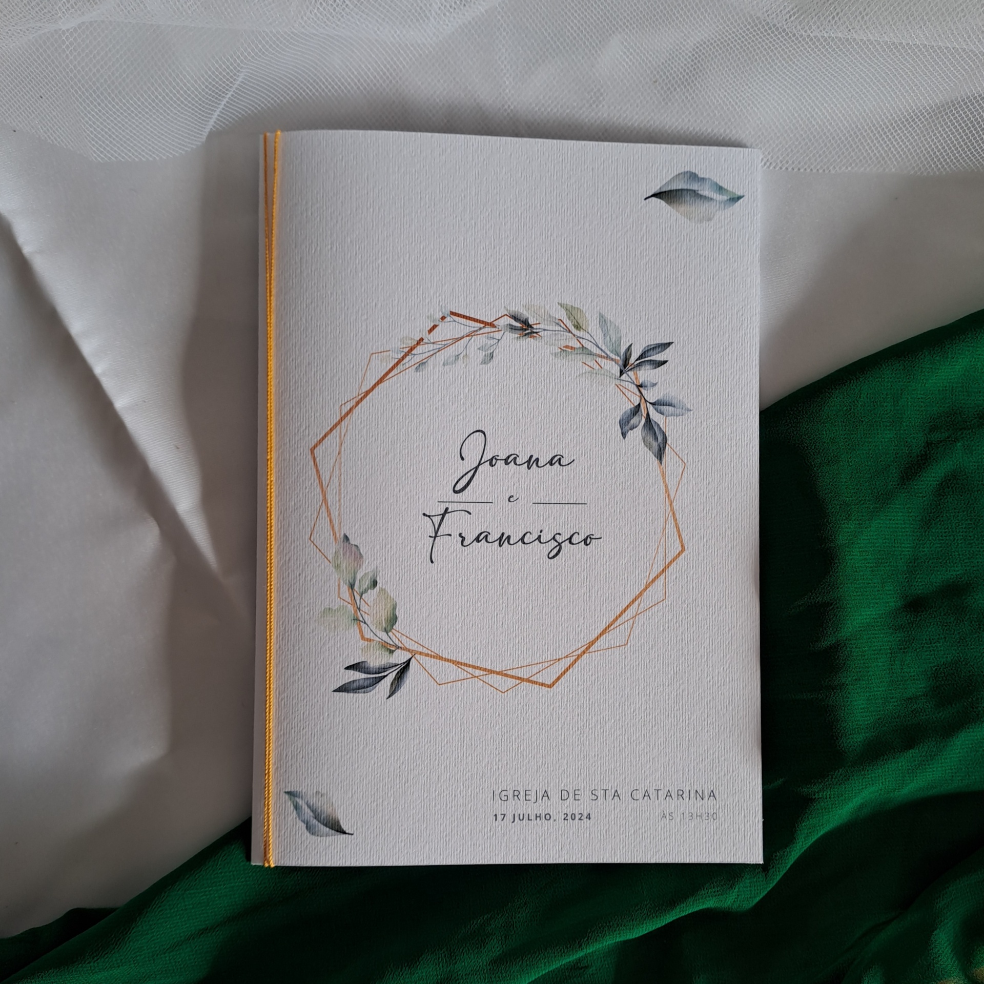 Missal em formato livro A5, com 12 páginas.