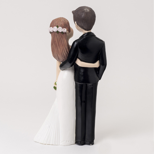 Topo de Bolo Noivos amorosos abraçados com bouquet.