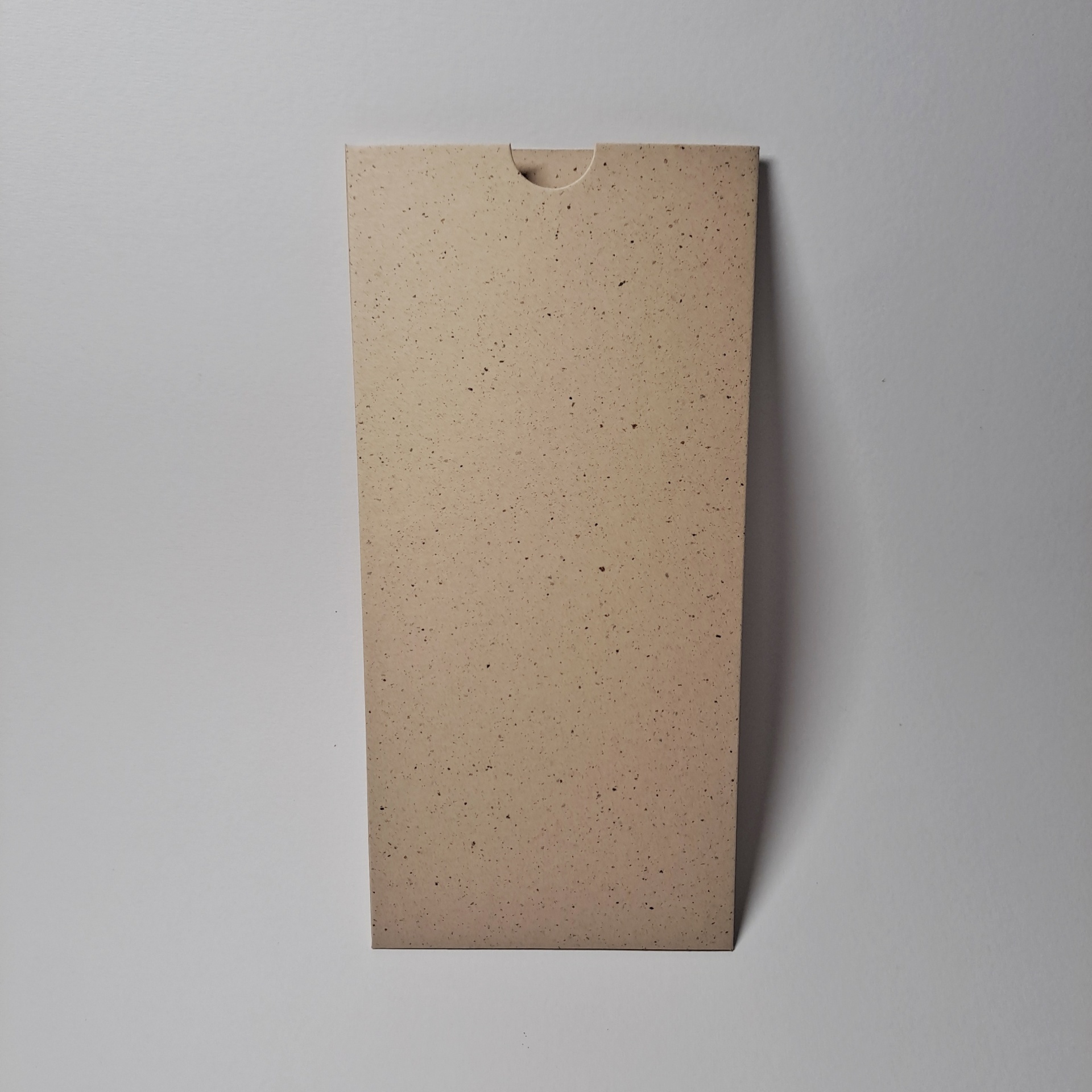 Envelope Organic Mate/Ecológico estilo luva com corte redondo para puxar.