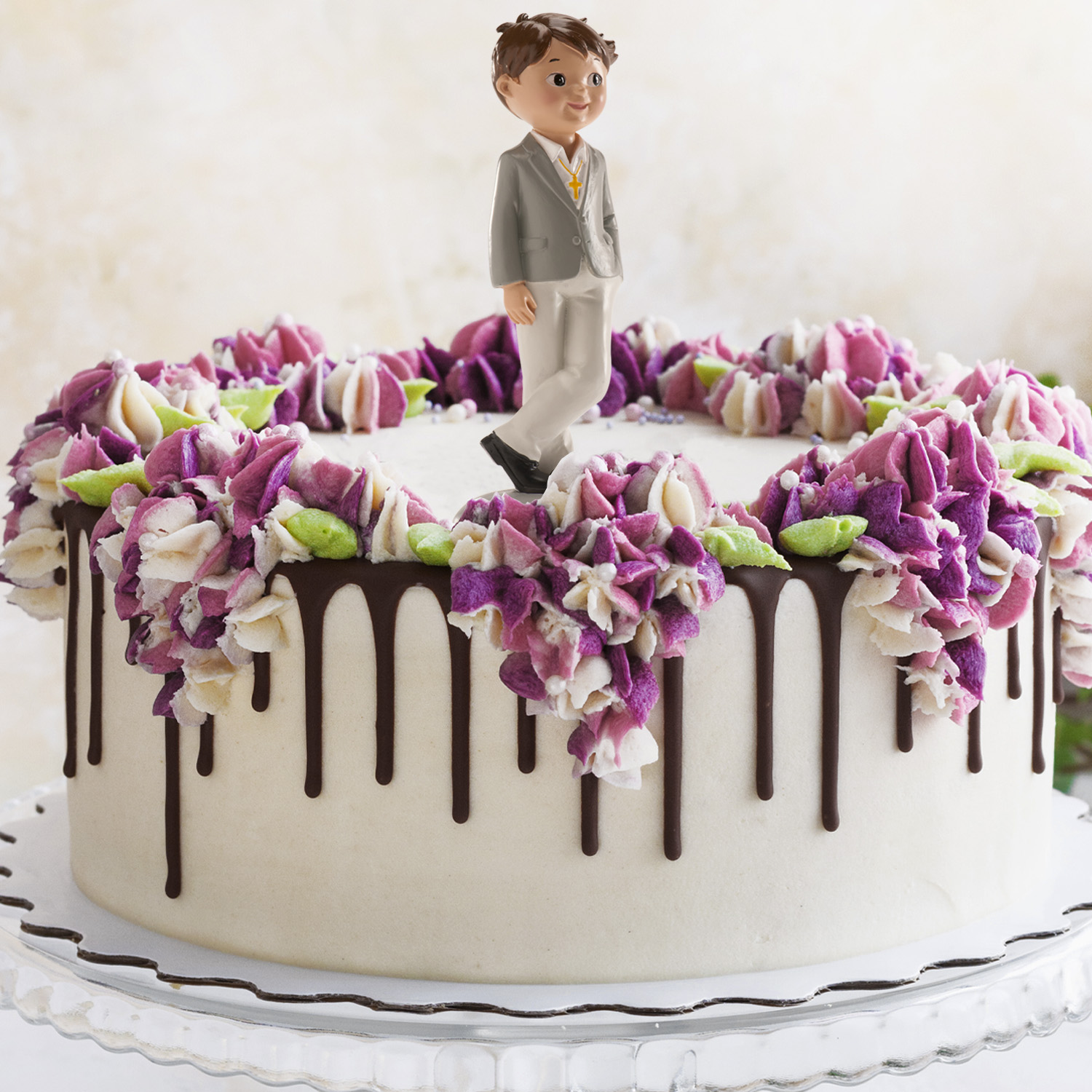 Um rapaz com pode descontraída é o motivo deste topo de bolo. Ideal para aniversários ou a comunhão.